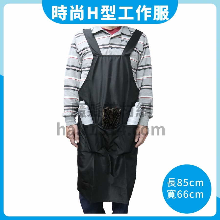 高級皺布工作服,經過專業潑水加工處理,為台灣製造品質優良,側身有大口袋,可放置用品工具,後身為綁帶式及鈕釦,可依身高及身材做調整